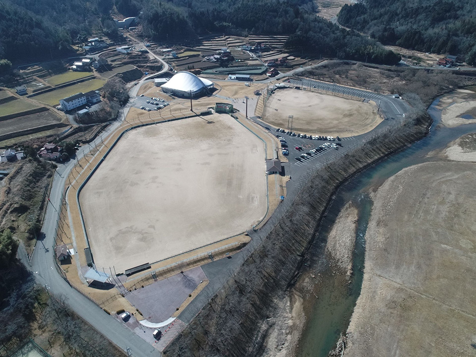 三原市白⻯湖スポーツ村公園は布引天幕という独特な形状をした体育館(アリーナ)と畳敷きの格技場をはじめ野球場、ソフトボールコートが2面が取れる総合グラウンド、人工芝2面のフットサル場、同じく人工芝4面のテニス場を擁する総合運動公園です。三原市内外の方の多くの利用者に親しまれている施設です。